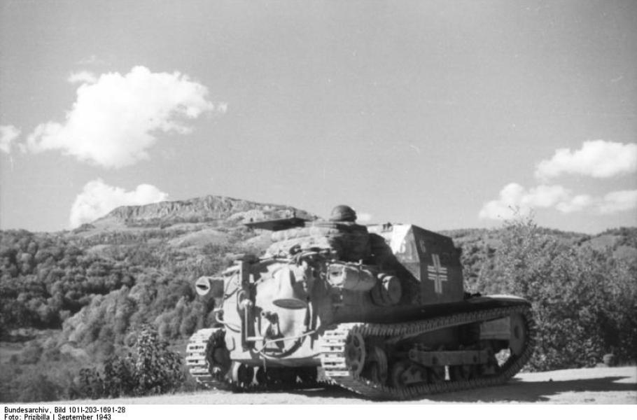 Když roku 1935 zaútočil Mussolini na východoafrickou Habeš, soustředil Řím k invazi i 239 tančíků Carro Veloce L3/35 včetně těch plamenometných. Snímek byl pořízen roku 1941 v Albánii
