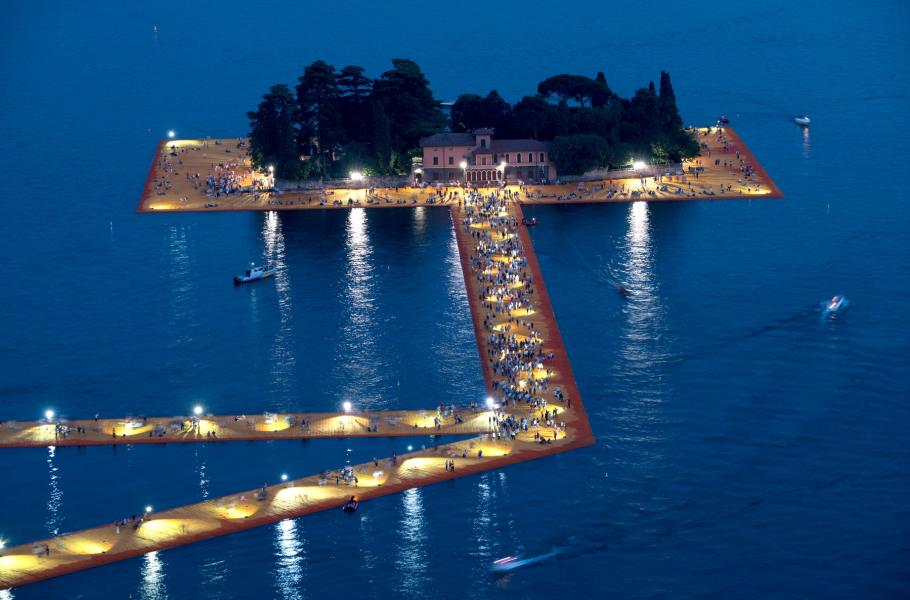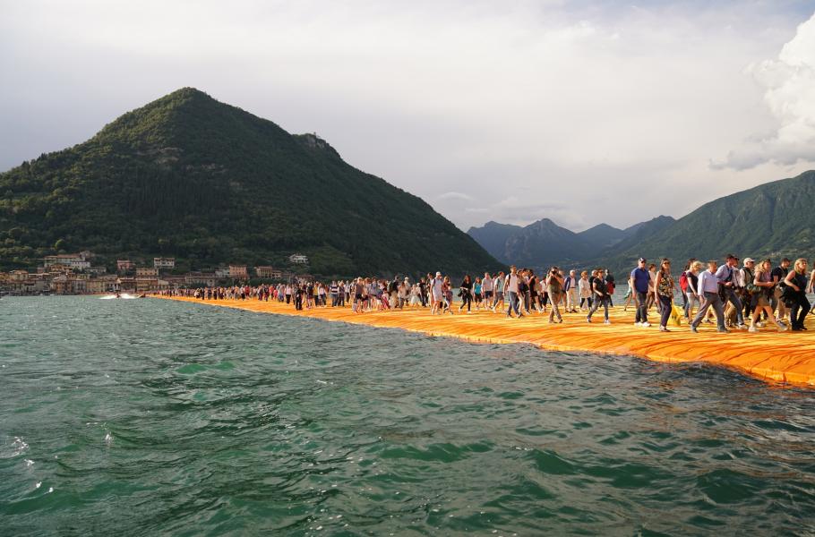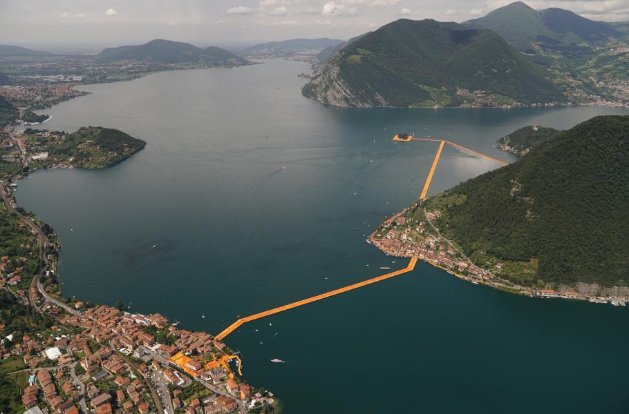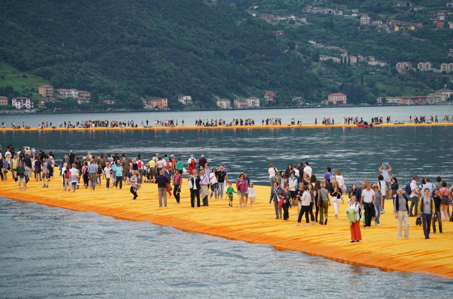 Umělecké instalace Američana Christa obvykle nejsou pro každého - v roce 1995 například zahalil látkou slavný pařížský most Pont Neuf, o deset let později pak totéž provedl s berlínským Reichstagem. Jeho nejnovější počin se ovšem setkává s obřím zájmem veřejnosti. Umělec původem z Bulharska propojil pomocí 220 tisíc plovoucích polyethylenových kostek ostrůvky ledovcového jezera Iseo s pevninským Sulzanem.