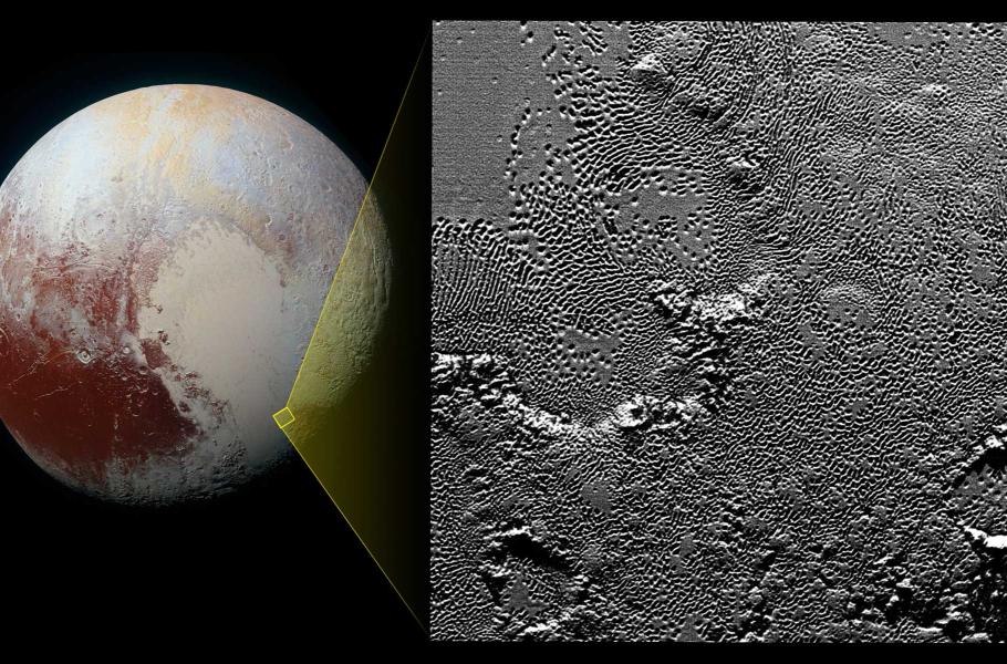 4) V okolí těchto hor se nacházející „písečné duny“ tvořené zmrzlými uhlovodíky rovněž překvapily vědce. Poskytly jim informace o tom, že atmosféra Pluta byla kdysi mnohem hustější a že se po jeho povrchu proháněly větry přenášející částice z místa na místo.