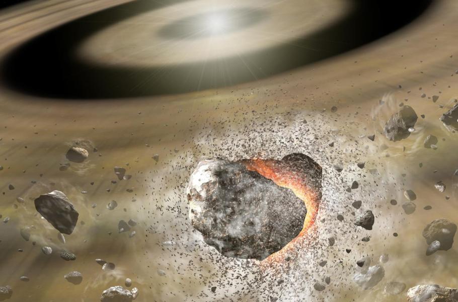 Plyn v suťových discích planetárních systémů vzniká při srážkách