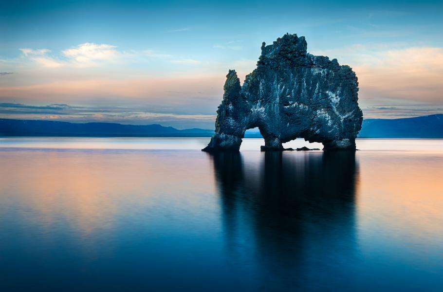 U poloostrova Vatnsnes na severozápadě Islandu vystupuje z moře patnáctimetrový čedičový monolit Hvitserkur, vzniklý při jedné z vulkanických erupcí. Protože je však jen 1–2 metry široký, musel jeho základnu zpevnit beton. Fotogenický útvar, jenž připomíná ohromný kamenný list a patří k magnetům na turisty, tak nyní odolá vichrům i zuřícím sopkám. Stojí asi 50 metrů od břehu a za odlivu lze po černé pláži dojít téměř k jeho patě. Podle legendy se jedná o trolla, který s prvními slunečními paprsky zkameněl. V létě pak hnízdí na drsném povrchu bílí buřňáci a racci, takže skála skutečně působí dojmem, jako by se pohybovala. (foto: Shutterstock)