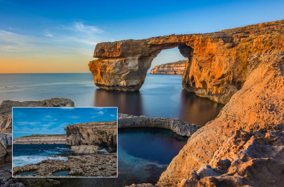 Padesátimetrová vápencová brána Azurové okno stála na maltském ostrově Gozo do roku 2017, kdy se po období silných bouřek zhroutila. Vznikla přitom teprve okolo roku 1830, když vlivem eroze zkolabovala obrovská jeskyně a zanechala po sobě jen „střechu“. Zkáza legendárního oblouku, který si zahrál v kultovním Souboji Titánů i v seriálu Hra o trůny, jde na vrub stejné síle, jež mu dala život – působení silných proudů. Už o třicet let dřív se kamenné okno jevilo jako nestabilní a v důsledku dalších a dalších kolapsů horniny se stále zvětšovalo. Navzdory hrozícímu nebezpečí šlo až do úplného konce o oblíbený cíl turistů. (foto: Shutterstock)