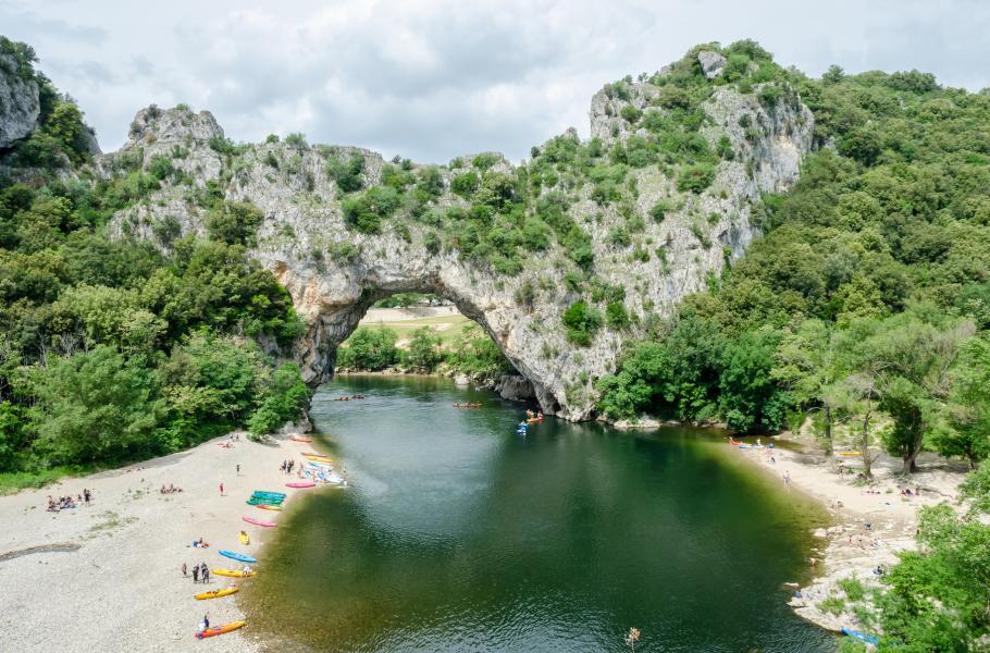 Pont d’Arc tvoří vstupní bránu do přírodní rezervace Gorges de l’Ardèche a nachází se na začátku stejnojmenného kaňonu. Oblouk vytvořila řeka Ardèche, když si před 400 tisíci lety prorazila cestu skrz vápenec široký 60 metrů. Výsledek lze obdivovat ze souše nebo také z vody – lokalitu si oblíbili vodáci, kteří řeku sjíždějí na kajacích a kánoích. Poblíž leží i Chauvetova jeskyně, proslulá paleolitickými malbami starými až 32 tisíc roků. (foto: Shutterstock)