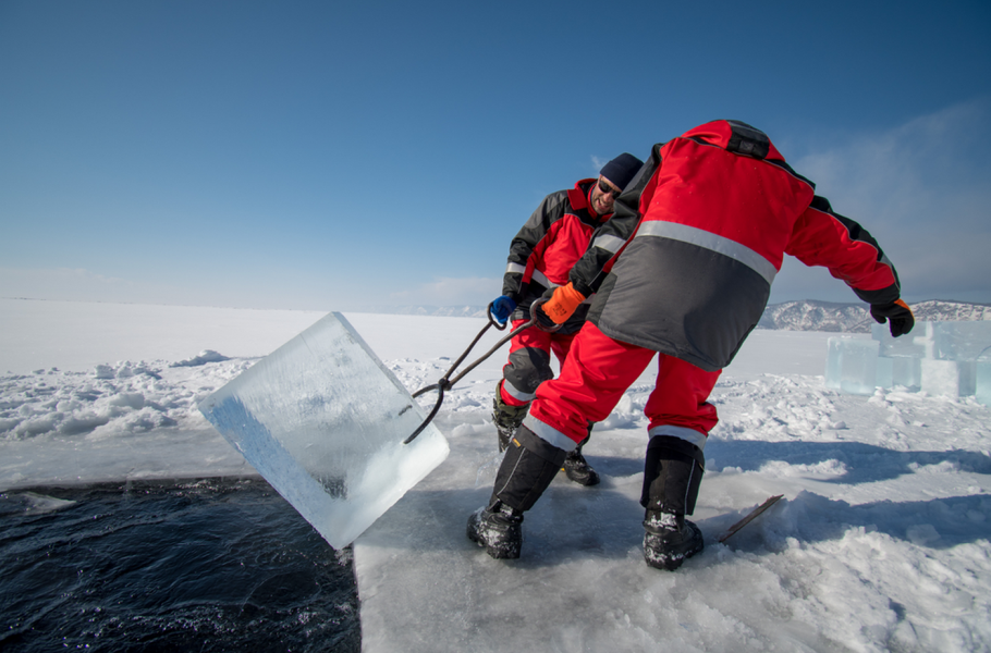 Výstavba teleskopu na Bajkalu. Teleskop Baikal Gigaton Volume Detector bude pozorovat neutrina přilétající z vesmíru. (zdroj: Bajkal-GVD)