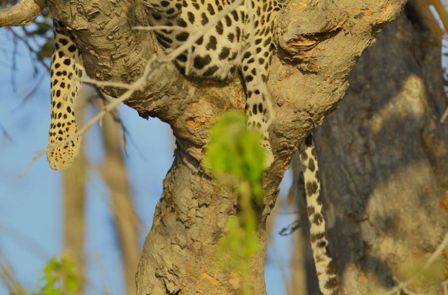 V Botswaně jsem navštívil celkem tři oblasti a k mému štěstí jsme zde vždy měli možnost pozorovat levhartí rodiny opakovaně téměř každý den. Vybírali jsme příhodné lokality vždy kolem vody a průvodce mi poradil, že snadněji než šelmu vystopujeme někde na stromě vytaženou impalu. A skutečně, ve všech třech případech jsme levharty našli díky jejich kořisti. Zkrátka tam, kde visí na stromě impala, nebude daleko levhart.