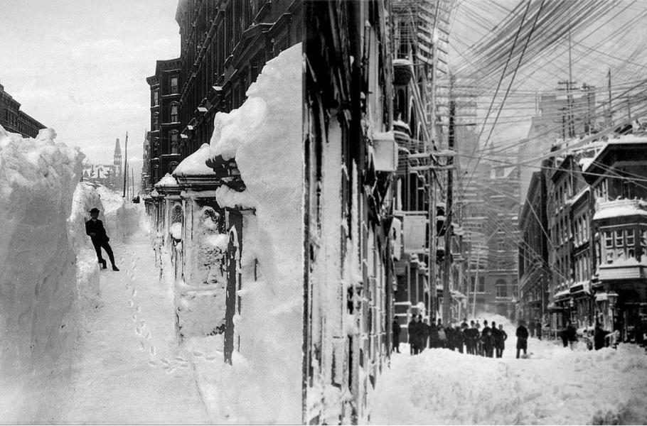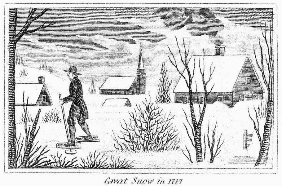 „Velký sníh“ – pod tak prostým označením se do historie zapsala série čtyř sněhových bouří, které v koloniální Nové Anglii udeřily na přelomu února a března roku 1717. Přesné záznamy o dopadech živelní pohromy se nezachovaly, jisté však je, že nejvíce postiženým místem se stal Boston. Tehdejší zima se vyznačovala četnými sněhovými srážkami – podle dostupných údajů pokryla zemi zhruba 1,5 metru vysoká vrstva už před začátkem Velkého sněhu. K tomu během několika dnů připadlo dalších 90–120 centimetrů. Byly hlášeny i závěje hluboké zhruba 7,5 metru, které pohřbily celé domy a kvůli nimž museli lidé opouštět své příbytky okny ve druhém patře. Jen těžko si lze dnes představit, jak si s nekonečnými sněhovými přívaly poradili lidé v době, kdy byly jedinými odklízecími prostředky lopata a silné zádové svalstvo. Silnice zůstaly zablokovány dlouhé týdny a vlastně nezbývalo než čekat, až sníh roztaje.