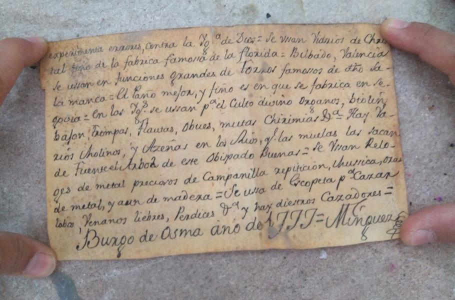 Sochu nazvanou Cristo del Miserere odvezli z kostela ve španělském městě Sotillo de la Ribera kvůli restauraci. Jakmile však pracovníci sundali Kristovi část prasklé bederní roušky, objevili v jeho pozadí tajnou schránku, jež ukrývala dopis z roku 1777: Napsal jej kaplan Joaquín Mínguez, který v „časové kapsli“ zanechal svědectví o své době.