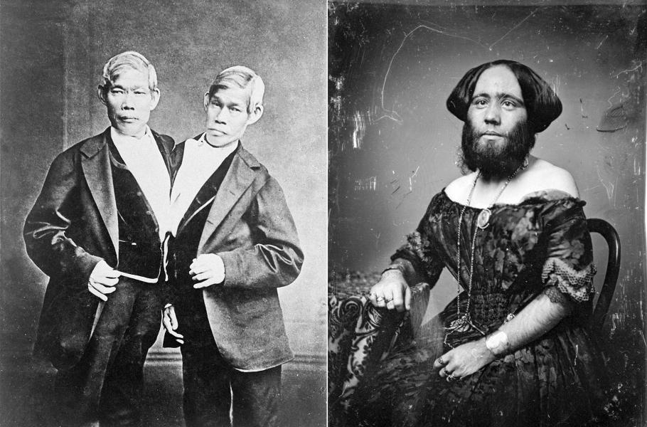 Siamská dvojčata Chang a Eng narozená v roce 1811 v Thajsku představují nejslavnější srostlý sourozenecký pár dějin. Jednou z prvních slavných vousatých dam se stala Josephine Clofullia, jejíž chlouba měřila přes 15 centimetrů. (zdroj: Profimedia, Wikimedia Commons, Thomas M. Easterly, volné dílo CC0)