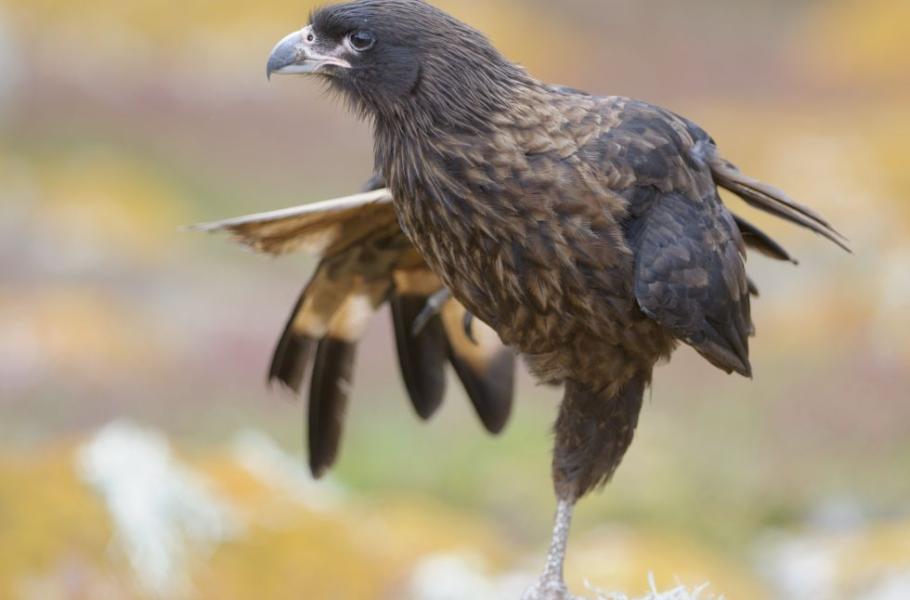Hned po vylodění nás uvítala letka čimang falklandských (Phalcoboenus australis). Tito dravci a mrchožrouti jsou nesmírně zvědaví ptáci a lidí se vůbec nebojí. Například neváhají strčit hlavu do odloženého teleobjektivu a prozkoumat sklo zblízka. V jejich přítomnosti jsem si odložil fotobatoh na zem a během pár minut na něm seděla pětice čimang, kteří se snažili odpárat ze zavazadla našitou značku. Jejich ostré zobáky si s úkolem poradily asi během tří minut. Celý den trávíme na ostrově v nádherném počasí a prudké slunce si začneme uvědomovat až po návratu na palubu Golden Fleece, kde nám začínají hořet tváře.