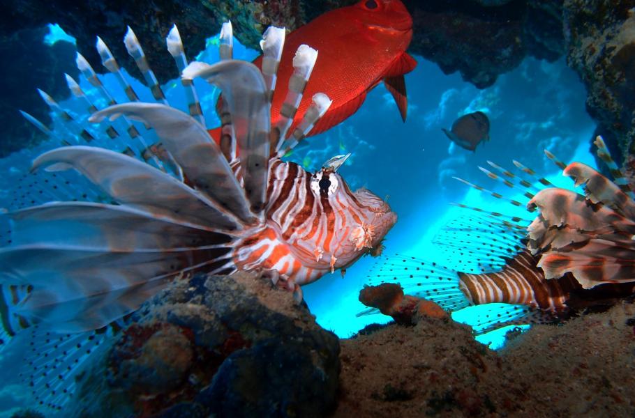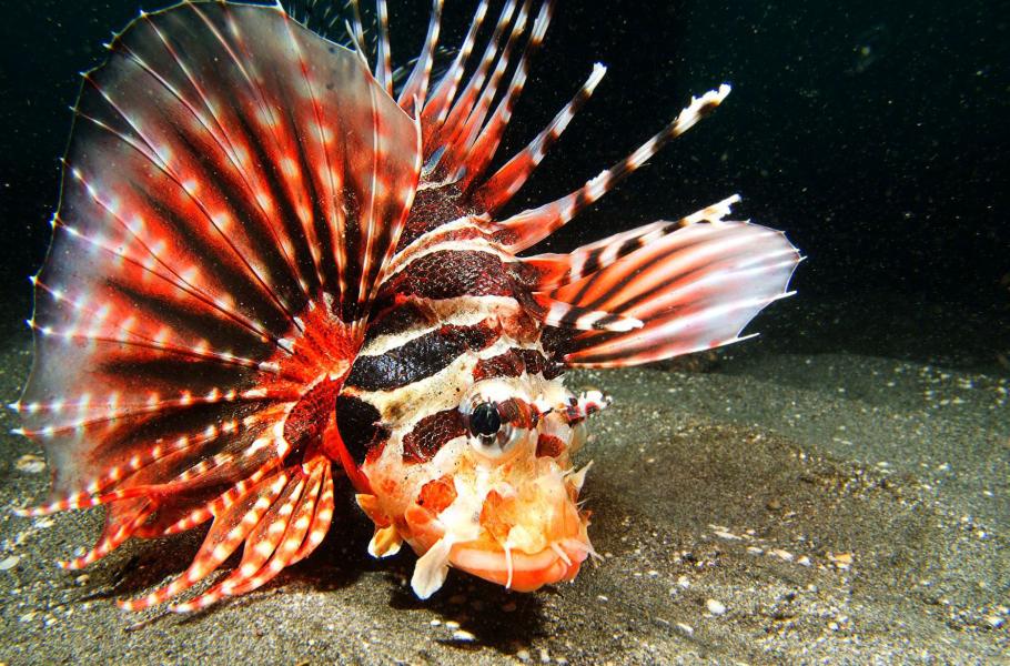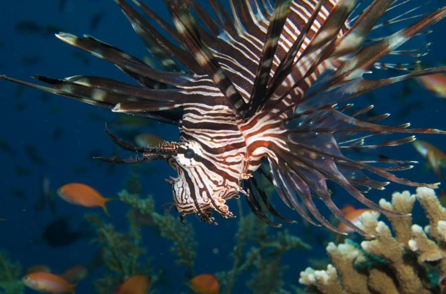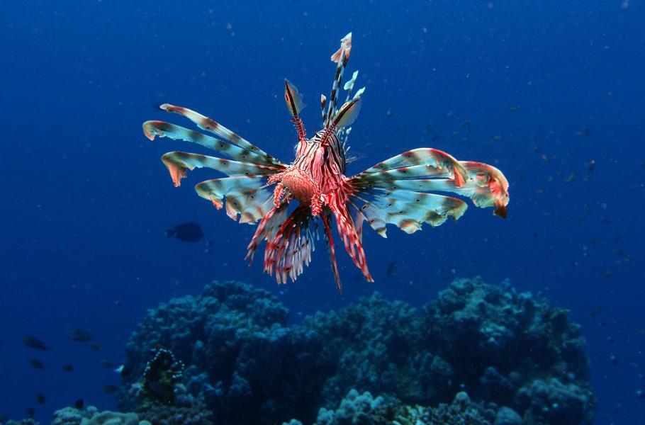 Podmořský motýl: Invazivní perutýn ohnivý je postrachem i mnohem větších tvorů