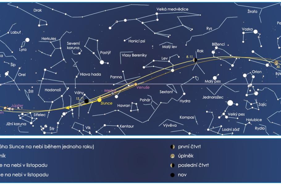 Pomineme-li vrtkavé počasí, hraje listopad obdivovatelům hvězdného nebe do karet. Noci jsou již výrazně delší než dny a díky pozdním východům Slunce lze s pozorováním vesmíru začít už ráno