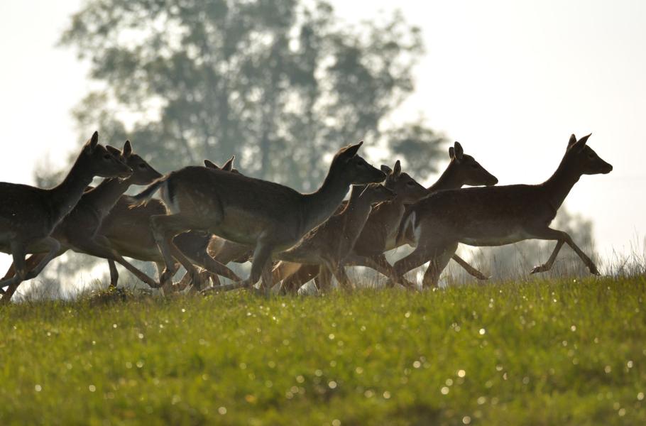 Plížení pro změnu měním na běh a naháním Petrovi celé stádo před objektiv. Opět musím klusat přes celou oboru, ale už si na to běhání z kopce do kopce začínám zvykat. Čas jsem si neměřil, ale cítím, že se v obíhání obory zlepšuju.