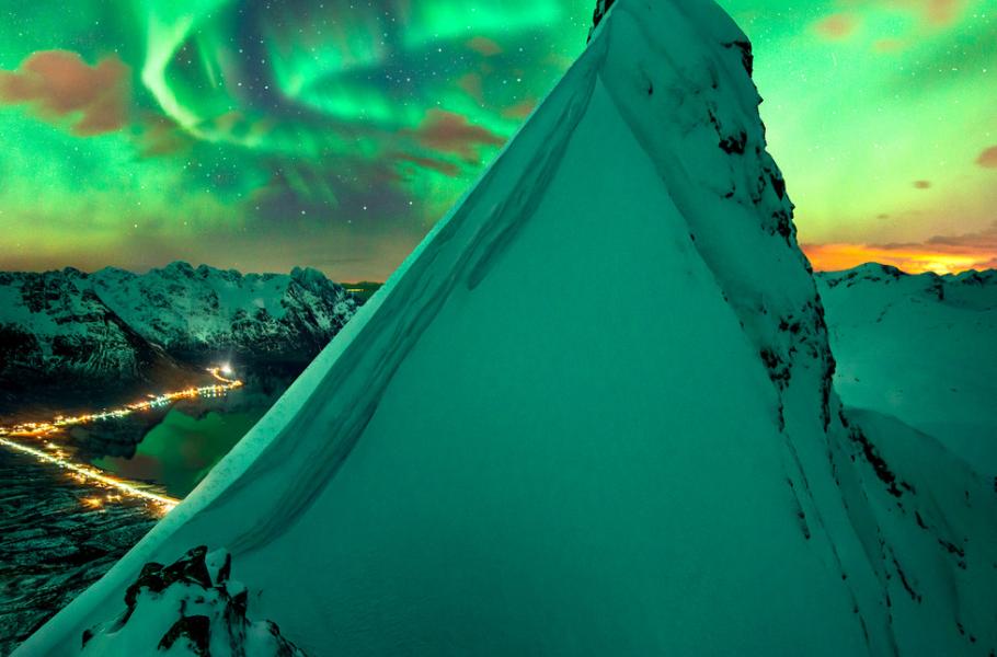 Nezbytnou výbavu lovců polárních září tvoří trpělivost. Dvě noci uplynuly bez úspěchu pod zataženou oblohou. Teprve třetí návrat k Austnesfjordenu na severu Norska se vyplatil. Světelný tanec rozzářil celé nebe a obarvil také horu nad fjordem i s širokým okolím.