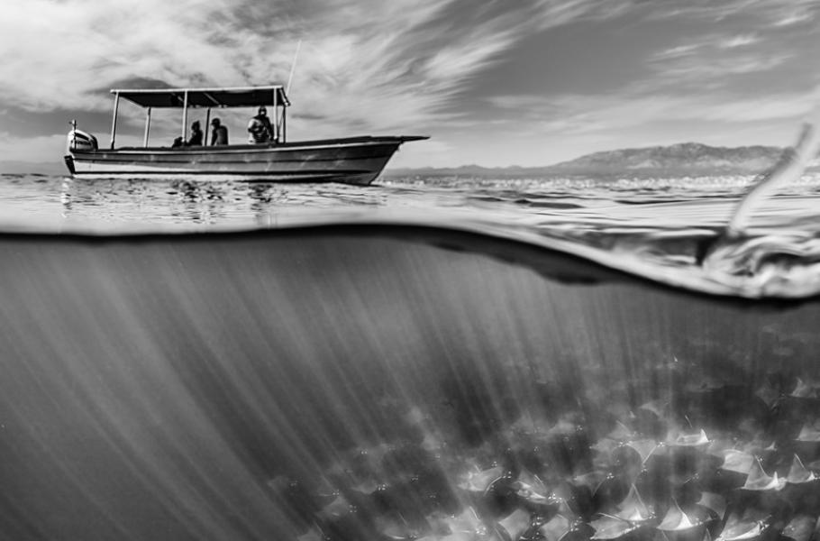 Vítězné snímky vytvořil Martin Broen ve vodách mexického státu Baja California během každoroční migrace mant. Jejich podvodní tanec doprovázely sluneční paprsky, které z ranní oblohy pronikaly pod hladinu. (foto: TPOTY, Martin Broen)