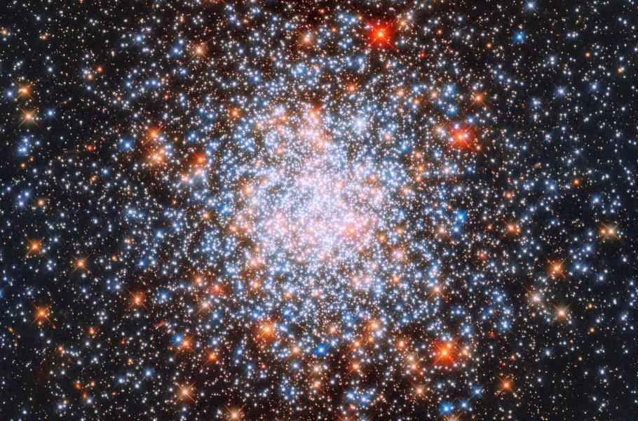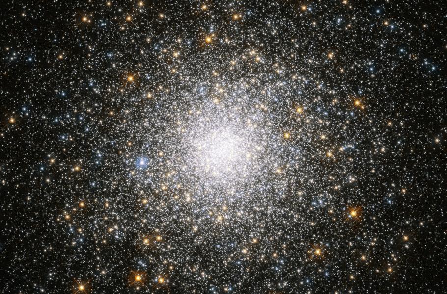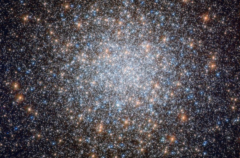 Kulová hvězdokupa M75 leží v souhvězdí Střelce, 67 tisíc světelných let od Země. Většina tamních stálic, úhrnem 400 tisíc, se soustředí v jejím jádru. Jde o jednu z nejhustěji zabydlených dosud pozorovaných hvězdokup, s neobyčejnou svítivostí odpovídající 180 000násobku Slunce. Seskupení objevil Pierre Méchain v roce 1780, později ho pozoroval i Charles Messier a zařadil jej do svého katalogu pod označením M75. Fotografie vznikla pomocí kamery ACS alias Advanced Camera for Surveys na palubě Hubbleova teleskopu. (foto: NASA, ESA, STScI, G. Piotto, CC BY 4.0)