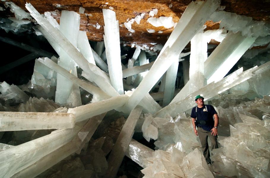 Mexickou Jeskyni krystalů objevili horníci při těžebních pracích teprve v roce 2000. Obsahuje přitom jedny z největších a nejčistších sádrovcových krystalů, jaké se kdy podařilo nalézt. Vznikly díky přírodním puklinám, jimiž pronikaly mineralizované termální prameny z nitra Země: Směrem k povrchu se ochlazovaly a minerály se začaly usazovat a krystalizovat. Největší tamní gigant měří 11 metrů na délku, 4 metry v průměru a váží 55 tun.