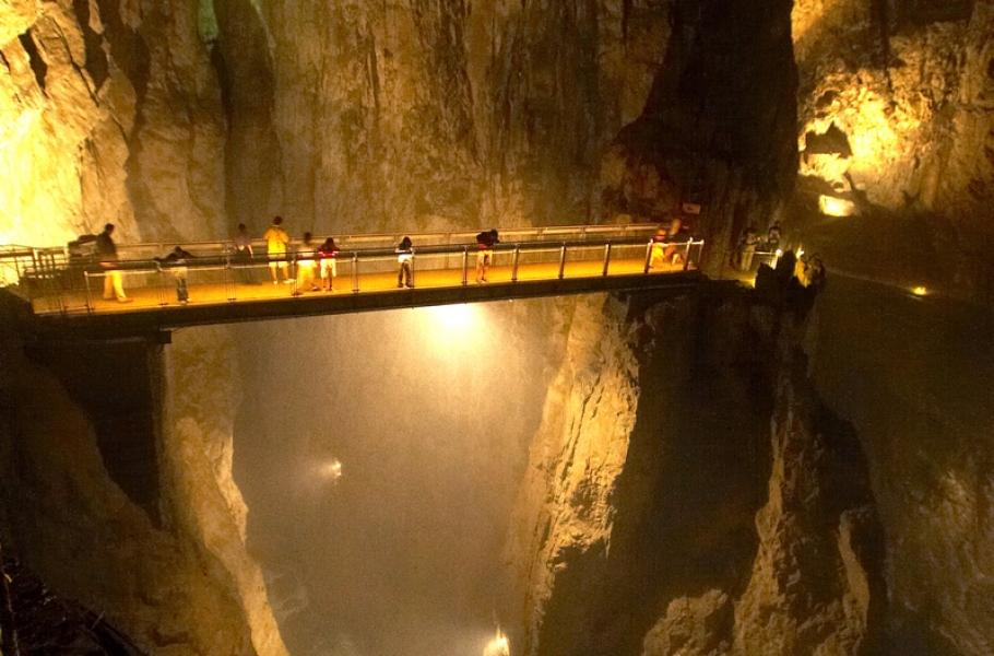 Ve slovinských Škocjanských jeskyních táhnoucích se v délce 5,8 km najdete mimo jiné rozlehlé podzemní rokle, vodopády i Ševelící jeskyni, jež mnoha fanouškům J. R. R. Tolkiena připomene Středozemi a její trpasličí Morii. Na vzniku vápencových dómů, proslulých nádhernými krápníkovými strukturami, se podílel tok Reky pramenící pod slovinskou horou Snežnik.