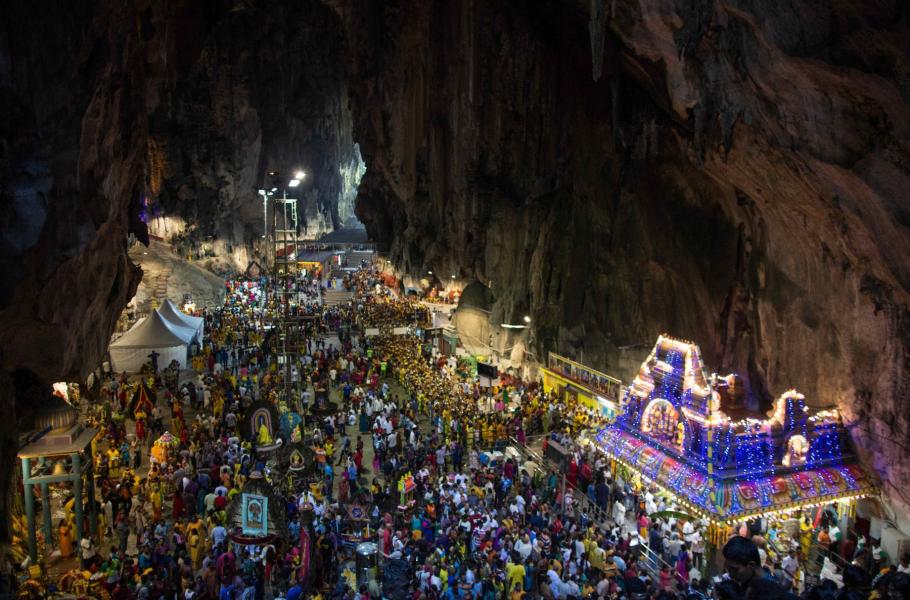Vápencové jeskyně na okraji města Kuala Lumpur ukrývají jedno z nejdůležitějších poutních míst vyznavačů hinduismu v Malajsii. Vchod střeží obrovská, zlatě natřená socha boha Murugana a do hlavní chrámové jeskyně vede 275 strmých schodů. Vápence, které se usazovaly dlouhých 400 milionů let, jsou dnes také domovem několika vzácných živočišných druhů, včetně pavouka sklípkoše batuského, netopýrů, hadů a makaků.