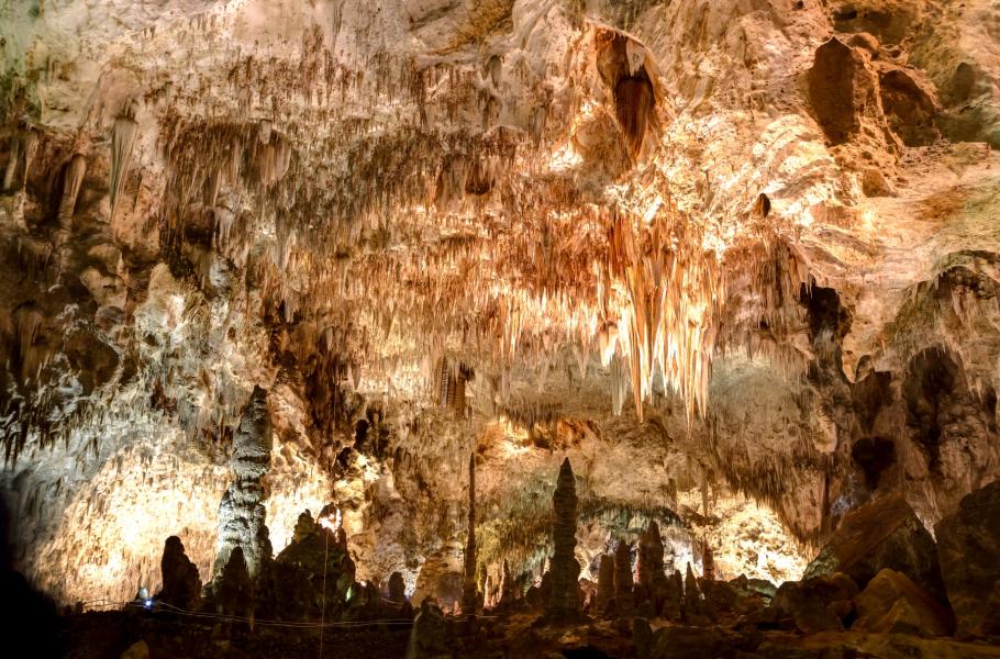 Desítky milionů let staré Carlsbadské jeskyně na jihu Nového Mexika patří k nejhlubším a nejrozlehlejším na světě. Udivují krápníkovou výzdobou, řadou zvláštních geologických útvarů a také největším stalagmitem na Zemi. Turisté ovšem často přijíždějí i za dalším lákadlem: Od května do října totiž z podzemí za soumraku vylétá až 400 tisíc netopýrů, kteří míří za potravou k blízké řece Pecos. Pro nás je zajímavé, že jeskyním dalo jméno nedaleké městečko nesoucí název „Karlovy Vary“ – ovšem v podobě „Carlsbad“.