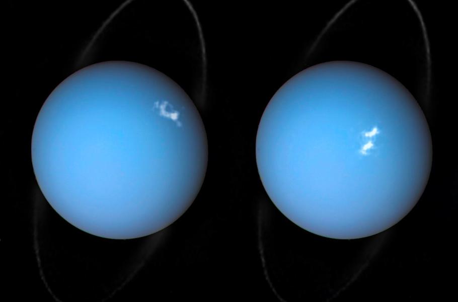 Také na vzdáleném Uranu jsou k vidění fascinující polární záře. Vypadají ale úplně jinak, než jsme zvyklí ze Země, a to i přesto, že jsou výsledkem velmi podobných procesů. Na rozdíl od naší planety a polárních září v podobě barevných záclon, mají ty „uranovské“ podobu bílých obláčků, které se objeví jen na několik málo minut. Odlišnosti zřejmě souvisí s magnetickým polem Uranu, o kterém toho vědci zatím ví jen velmi málo.