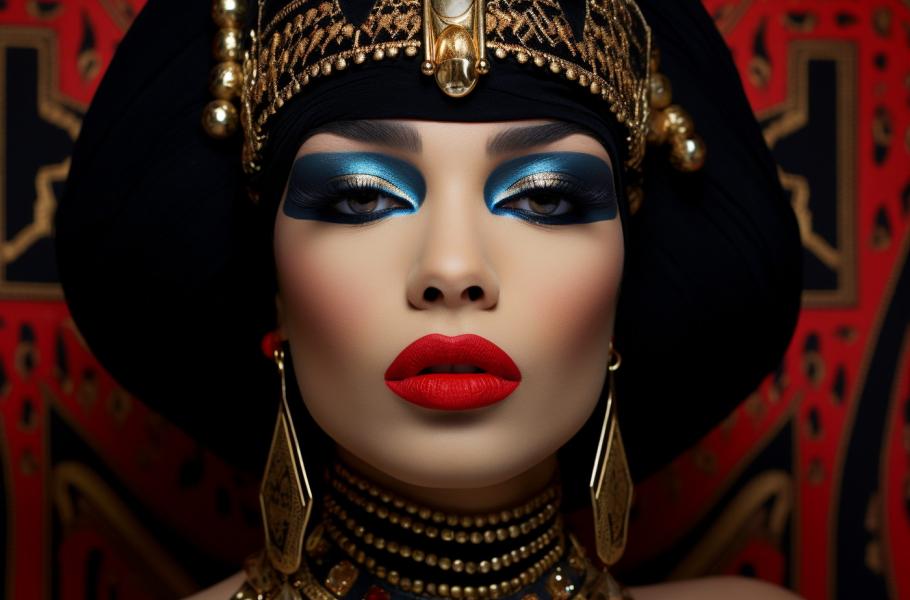 První doloženou barvu na rty známe z Mezopotámie. Objevena byla ve městě Ur a je stará přibližně pět tisíc let. Ve zvýraznění rtů se přímo vyžívali starověcí Egypťané – ženy i muži. A složení rtěnek? Vyráběly se z čistě přírodních sloučenin, ale sytých červenofialových barev se docílilo sloučením jódu a jedovatého bromu, který způsoboval četné zdravotní komplikace. Sytě rudými rty proslula zvláště královna Kleopatra. Docílila jich kombinací drcených karmínových brouků, mravenčích vajíček a vosku. Lesk pak dodávaly rybí šupiny. Rtěnky provázely Egypťany i do říše mrtvých. Dva kelímky barev na rty byly běžnou součástí pohřební výbavy. (ilustrace: Midjourney AI, PDM 1.0)
