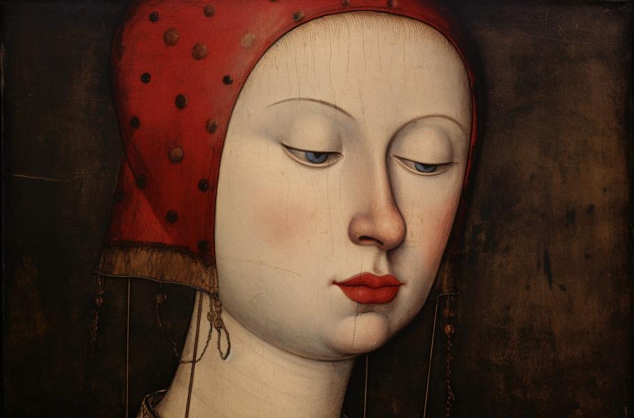 Ve středověku byly výrazně rudé rty prohlášeny za ďáblovo znamení. Když se žena líčila, spíše se snažila svou přirozenou barvu potlačit. Až renesance to změnila. K malování rtů se používaly směsi včelího vosku a rostlinných barviv. O pár století později se ovšem zvýrazňování ženské krásy opět dostalo do křížku s mravokárci. V roce 1770 uzákonil anglický parlament, že manželství může být zrušeno, pokud ho žena dosáhla za pomoci „make-upu“. V roce 1837 dokonce královna Victorie rtěnku oficiálně zakázala! (ilustrace: Midjourney AI, PDM 1.0)