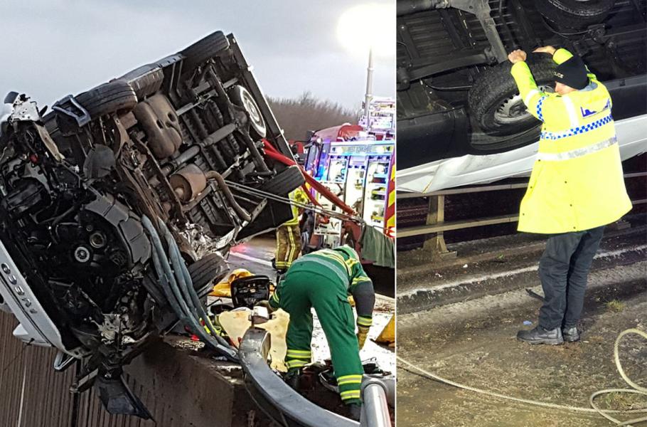 Scéna jako z napínavého filmu se naskytla policistovi Martinu Willisovi, když jako první dorazil na místo nahlášené dopravní nehody v Yorkshiru: Dodávka vyjela ze silnice, zastavila se na okraji srázu a balancovala na probouraných svodidlech, zatímco řidič zůstal zaklíněný uvnitř.