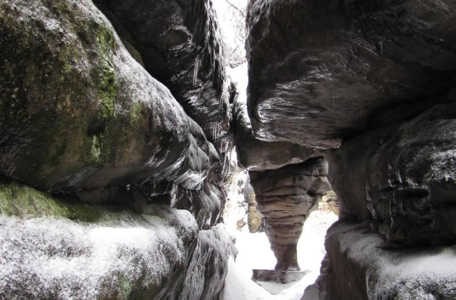 Labyrint mohutných skalních bloků se nachází na okraji náhorní plošiny masivu Bor. I tady se můžete pokochat krásnými výhledy podobně jako z Velké Hejšoviny. Projdete rozsedlinami hlubokými 6–8 metrů a spatříte mnoho bizarních skalních výtvorů. Průlezy jsou někdy tak úzké, že vás donutí sundat batoh nebo se přikrčit. Placená prohlídkové trasa má dva vchody – u západního je možnost se občerstvit a navíc sem můžete dojet autem a za poplatek zaparkovat.
