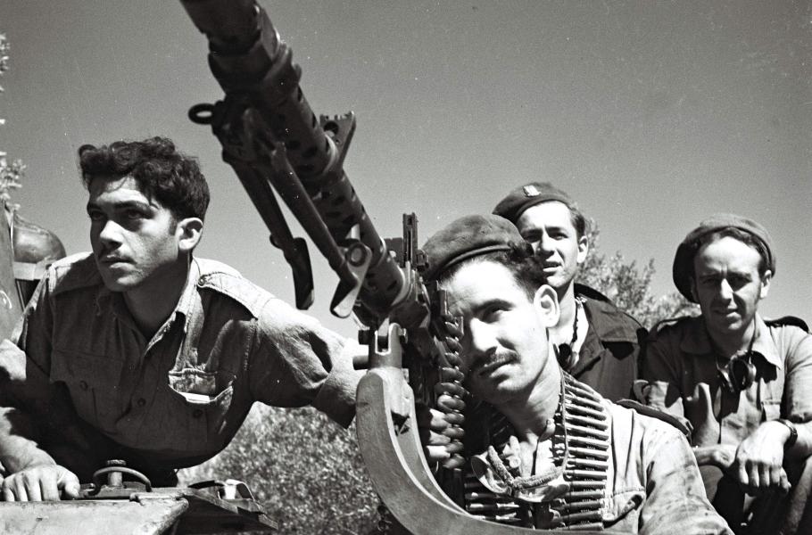 Přílušníci Izraelských obranných sil s původně německým kulometem MG 34 dovezeným z Československa.