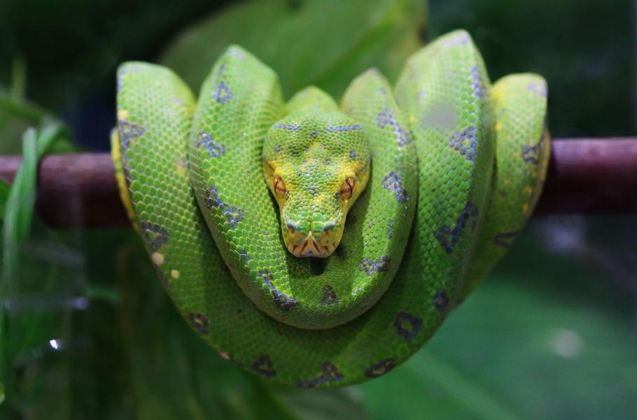 I v naprostém klidu padne na provoz střev, srdce, játra a ledvin plná čtvrtina energie, kterou had spotřebuje. Na snímku je krajta zelená (Morelia viridis).