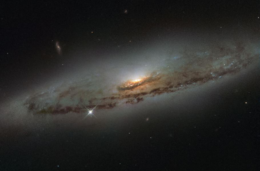 Boční pohled na spirální galaxii NGC 4845 je dílem Hubbleova vesmírného teleskopu. Tato galaxie se nachází v souhvězdí Panny, přibližně 65 milionů světelných let od Země. Podobně jako naše galaxie i NGC 4845 hostí ve svém středu supermasivní černou díru. Potvrzují to pozorování hvězd nacházejících se blízko středu galaxie, které se pohybují jinou rychlostí a jiným způsobem, než je obvyklé.