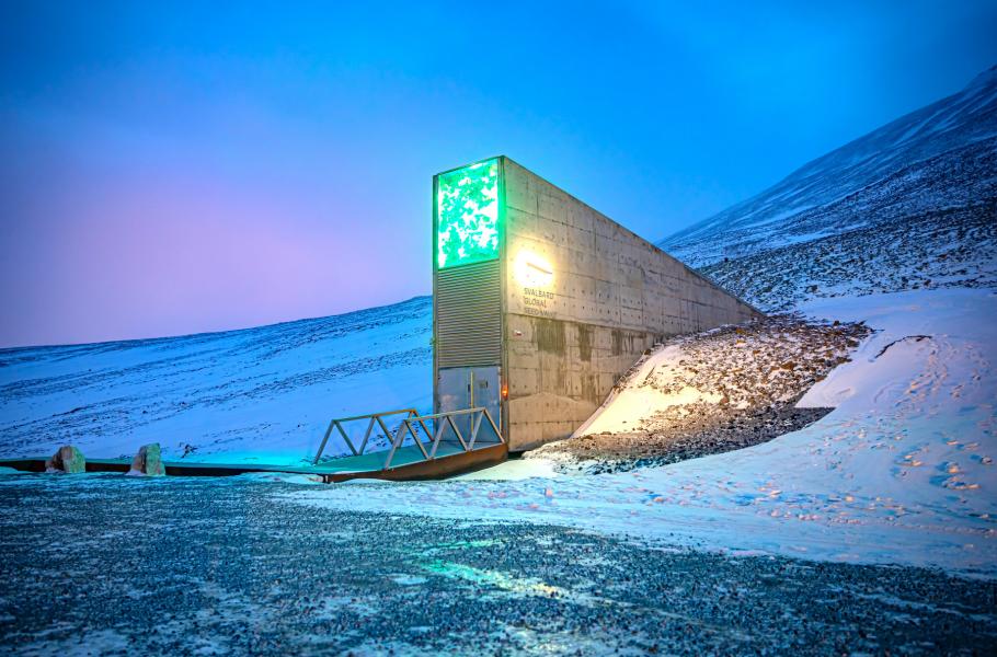 Dnes tak funguje na 1 700 podobných „skladišť“ a jedno z největších se od roku 2008 nachází na souostroví Špicberky, kde jeho výstavbu financovalo norské ministerstvo zemědělství. Na lokalitu za severním polárním kruhem padla volba proto, že patří mezi nejodlehlejší místa planety, kam však stále směřují pravidelné lety. Hlavní roli při výběru ovšem hrály klimatické podmínky: Skladovací haly Špicberského globálního úložiště semen neboli Svalbard Global Seed Vault chrání přes sto metrů silný pískovcový masiv, v jehož nitru panuje stálá teplota tři stupně pod bodem mrazu. Znehodnocení biologického materiálu tedy nehrozí ani při výpadku elektrických generátorů, které zajišťují trvalých minus 18 stupňů, což se optimálně hodí pro dlouhodobé skladování. Nízká teplota a minimální vlhkost snižují metabolickou aktivitu, a semena tak zůstanou životaschopná až několik staletí.