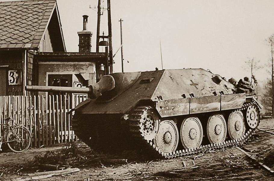 V tom okamžiku tam přijížděly i tři stíhače tanků Hetzer doprovázené pěchotou. Když jejich osádky spatřily nepřítele, zahájily palbu. Prvnímu nákladnímu automobilu s dělem se zázrakem podařilo projet kolem nich a dostat se bez škod a zranění hlouběji do Bělovsi. Druhá souprava však takové štěstí neměla.