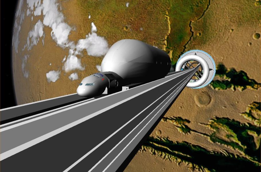 Tak vysoká věž je asi technicky i technologicky nepředstavitelná. Mohli bychom ji však nahradit dostatečně dlouhým lanem, po němž by až na geostacionární dráhu vyjížděly dopravní kabiny. V éře podmořských kabelů měřících tisíce kilometrů se zdá taková idea přece jen reálnější, přesto i v tomto případě narážíme na nemalé problémy. Lano vedoucí na geostacionární dráhu by se totiž vlastní vahou rychle zřítilo dolů, tudíž by se muselo natáhnout do větší vzdálenosti a zřejmě i zatížit protizávažím – mohlo by jít například o zachycený asteroid nebo sebranou skládku kosmického smetí.