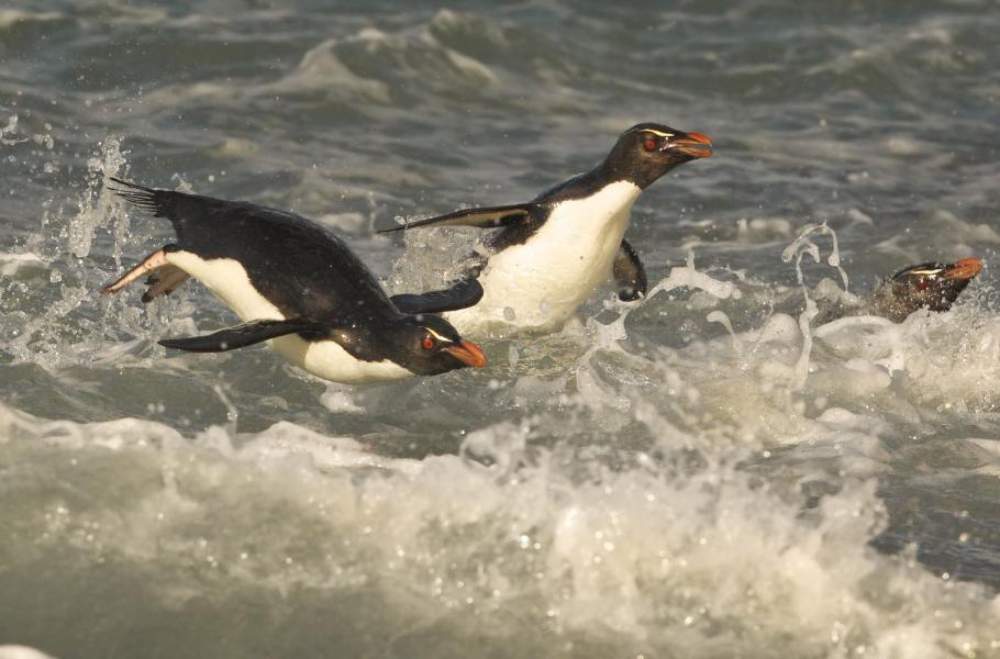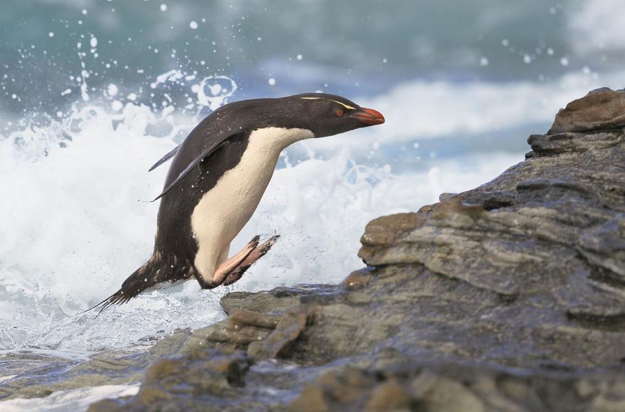 Na Falklandských ostrovech žije pět druhů tučňáků, z nichž nejběžnější je tučňák skalní. Tento druh se vyskytuje na několika oblastech jižní polokoule, ale nejhojněji je zastoupen právě kolem pobřeží nejjižnější části Jižní Ameriky a na Falklandech. Proto bývá označován jako samostatný poddruh – tučňák skalní jižní (Eudyptes chrysocome chrysocome). Patří k rodu Eudyptes, což v překladu ze staro-řečtiny znamená dobrý potápěč. Tím tučňák skalní nepochybně je, má ovšem i další schopnosti, které by od něj člověk určitě neočekával.