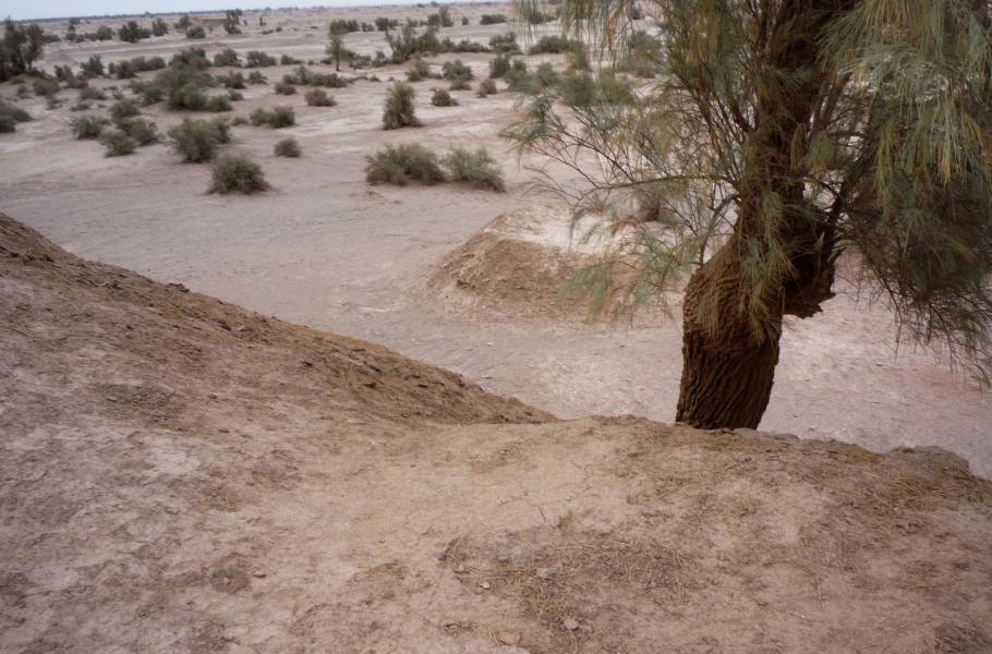 Čím začíná poušť? Kupodivu stromy. Už kousek za Šahdádem nás čeká překvapení. Tamaryšky. Objevují se první solitéry, s nimi hliněné kopečky. Celé pahorky, na každém vyšší keř, na těch větších jeden nebo i několik skutečných stromů. Těmto hliněným kupkám se říká nebka (perský výraz pro přesyp kolem trsu vegetace), místní jim přezdívají „pouštní vázy“ nebo „květináče“. Projíždíme skoro savanou. Musíme zastavit, divukrásný pohled se naskýtá jen tady. Dál pahorky mizí, ale tamaryškové trsy zůstávají, žlaby a rokle v štěrkové pláni jsou poseté kšticemi keřů, ani v polopoušti nebývá tolik zeleně. Vláha z hor se tu ztrácí a ještě svede vytvořit takový zázrak.