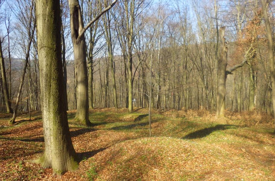Když jsme kolem sebe spatřili pravidelné terénní vlny, rozbušilo se mi srdce. Ocitli jsme se v lokalitě zvané V jámách. Habrová doubrava skrývá botanický klenot i nesmazatelné stopy po prastaré povrchové těžbě pikovického zlata. V lese jsou patrné kruhové propadliny a někde i kopečky vytěžené hlušiny, které zvolna zahlazuje sama příroda.