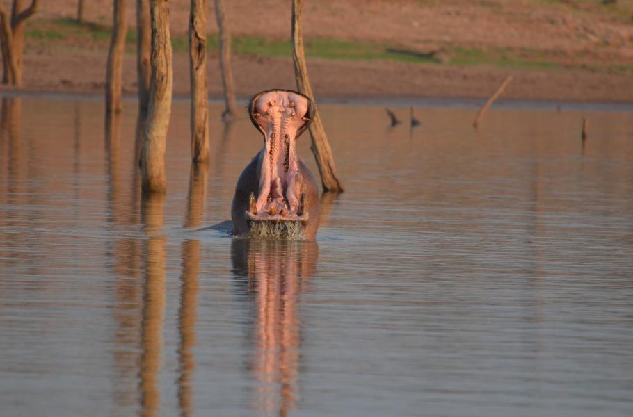 Národní park Mana Pools (Čtyři bazény) byl založen již v roce 1963 na ploše přesahující 6 000 km². Přiléhají k němu další chráněná území a je charakteristický periodickými záplavami vody ze Zambezi, po nichž zde zůstávají až do období sucha vodnatá jezírka. Atmosféra v parku je zcela ojedinělá možností bezprostředního kontaktu návštěvníka s velkými africkými zvířaty a to přesto, že jsme při půldenní rallye do tábora projížděli i územími označenými „Hunting area“, tedy „Lovecké území“.