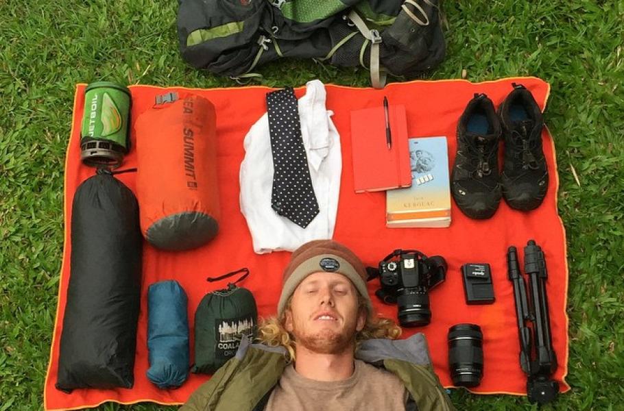 Quin Schrock se svou cestovní výbavou