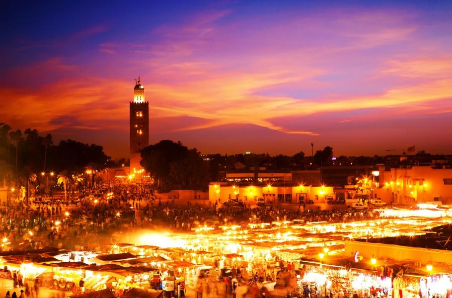 Většinu marockých měst tvoří dvě naprosto odlišné části: stará centra nazývaná medína a moderní čtvrti. Hranicí mezi nimi je pár metrů starých hradeb, ale zdánlivě také několik století. V labyrintu marrákešské medíny se ztratíte – otázkou není jestli, ale kdy. V uzounkých uličkách vás budou míjet pokřikující děti, zahalené ženy i muži doprovázející oslíky nesoucí náklad. Z krámků voní koření, září ovoce a nad medínou se nese hlas muezzina z nedaleké mešity. A určitě neminete prostorné náměstí Džámi al-Faná, plné nejrůznějších kejklířů, hudebníků a prodavačů všeho možného, na němž po setmění jako mávnutím kouzelného proutku vyrostou desítky stánků nabízející čerstvě připravená jídla. (foto: Shutterstock)