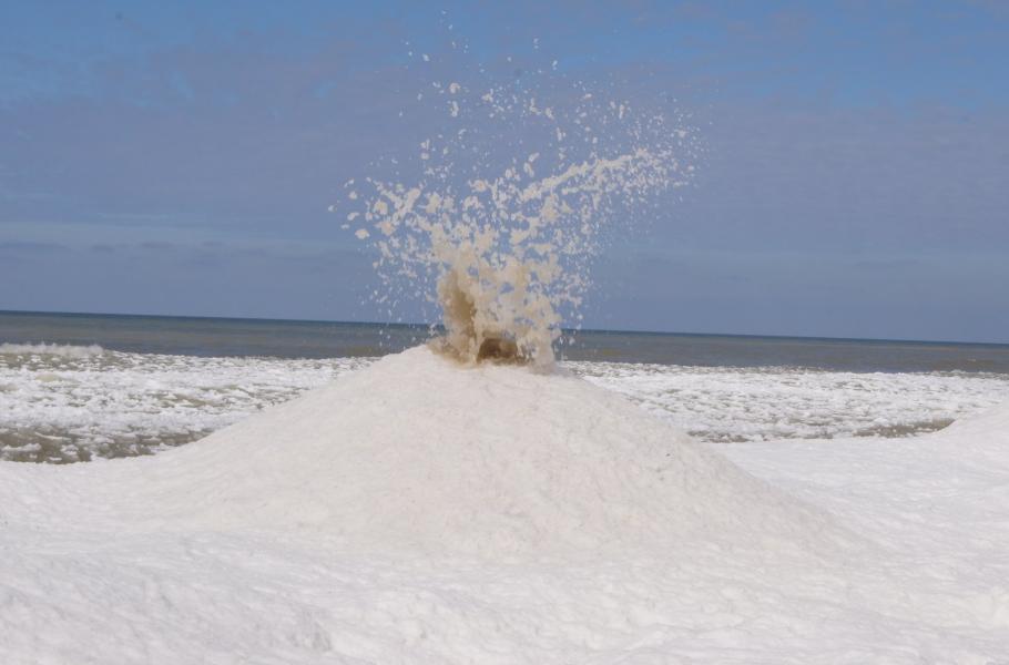 V oblasti Velkých jezer jsou v těchto dnech k vidění velmi neobvyklé sopky. Namísto lávy a kamení vyvrhují led a vodu