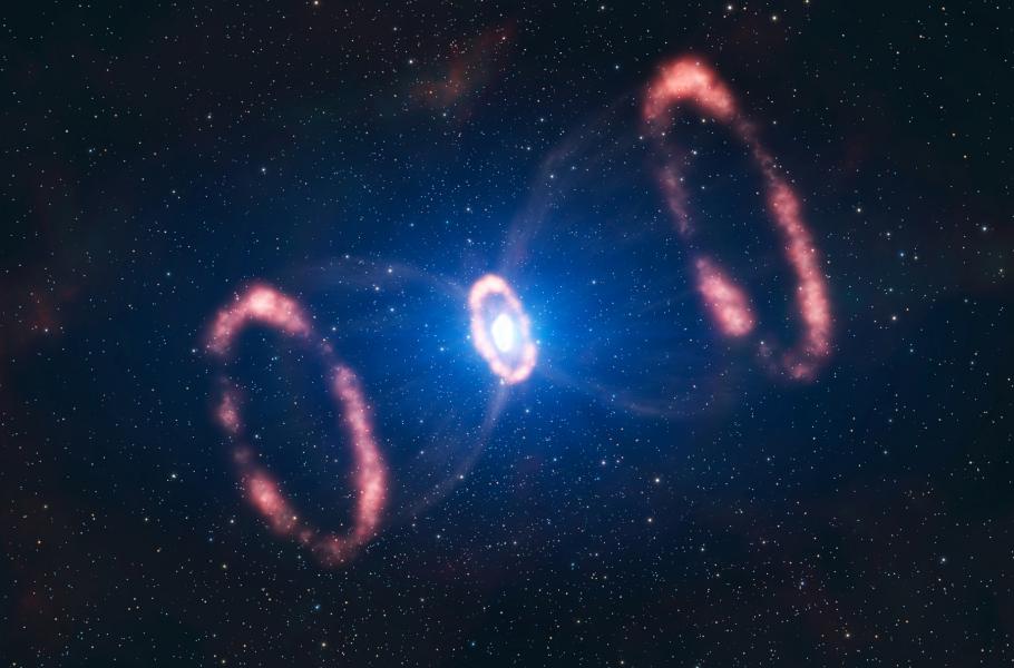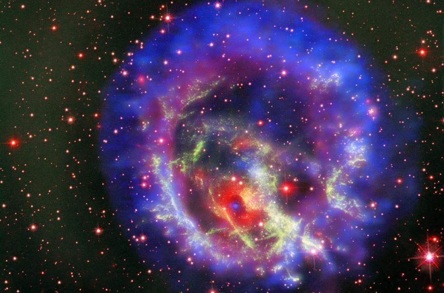 Nové snímky získané dalekohledem ESO/VLT odhalují oblast v Malém Magellanově oblaku: Nápadný prstenec plynu, v systému známém pod katalogovým označením 1E 0102.2-7219, se pomalu rozpíná uprostřed lokality plné rychle se pohybujících filamentů plynu a prachu. Původní hvězda explodovala před dvěma tisíci roky a astronomové identifikovali obtížně zachytitelný hvězdný objekt, osamocenou neutronovou stálici. Supernova po sobě zanechala změť horkého prachu a plynu, jež představuje klíč k distribuci těžších chemických prvků do okolí.