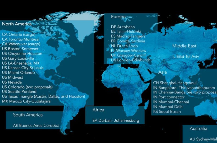 V aktuálně zveřejněném užším seznamu míst, kde by mohl Hyperloop vzniknout, ale Česko nefiguruje. Podobně dopadlo i Slovensko, Maďarsko a Rakousko. V seznamu, který obsahuje 35 lokací z celého světa, Evropu zastupuje Polsko, Německo, Estonsko, Španělsko, Francie, Nizozemsko a dvě uvažované tratě v Británii. Další uvažované lokality jsou v Severní Americe (16), Asii (8) a po jedné v Jižní Americe, Austrálii a na Středním východě.
