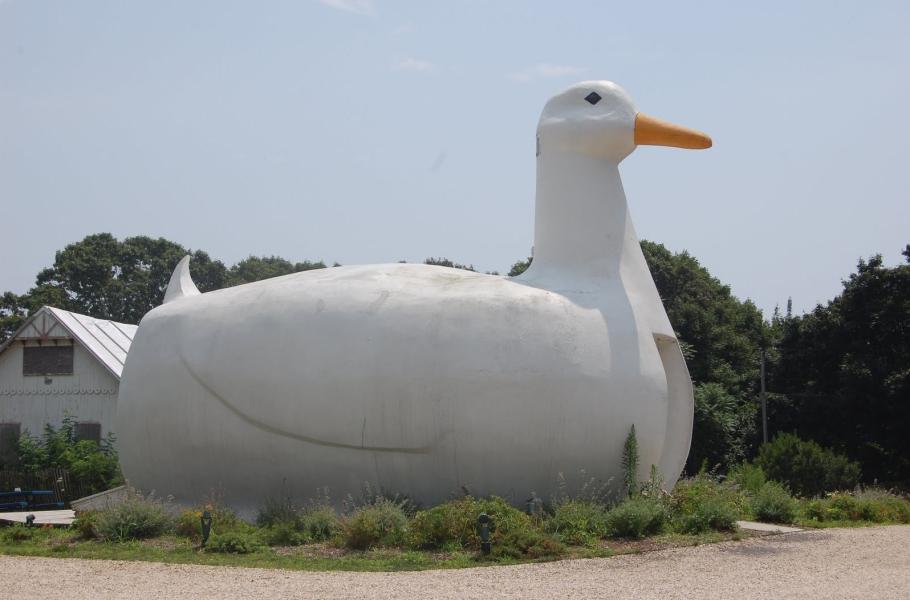 Velká kachna stála původně v newyorské čtvrti Riverhead. Později se tento obchůdek přestěhoval do New Jersey.