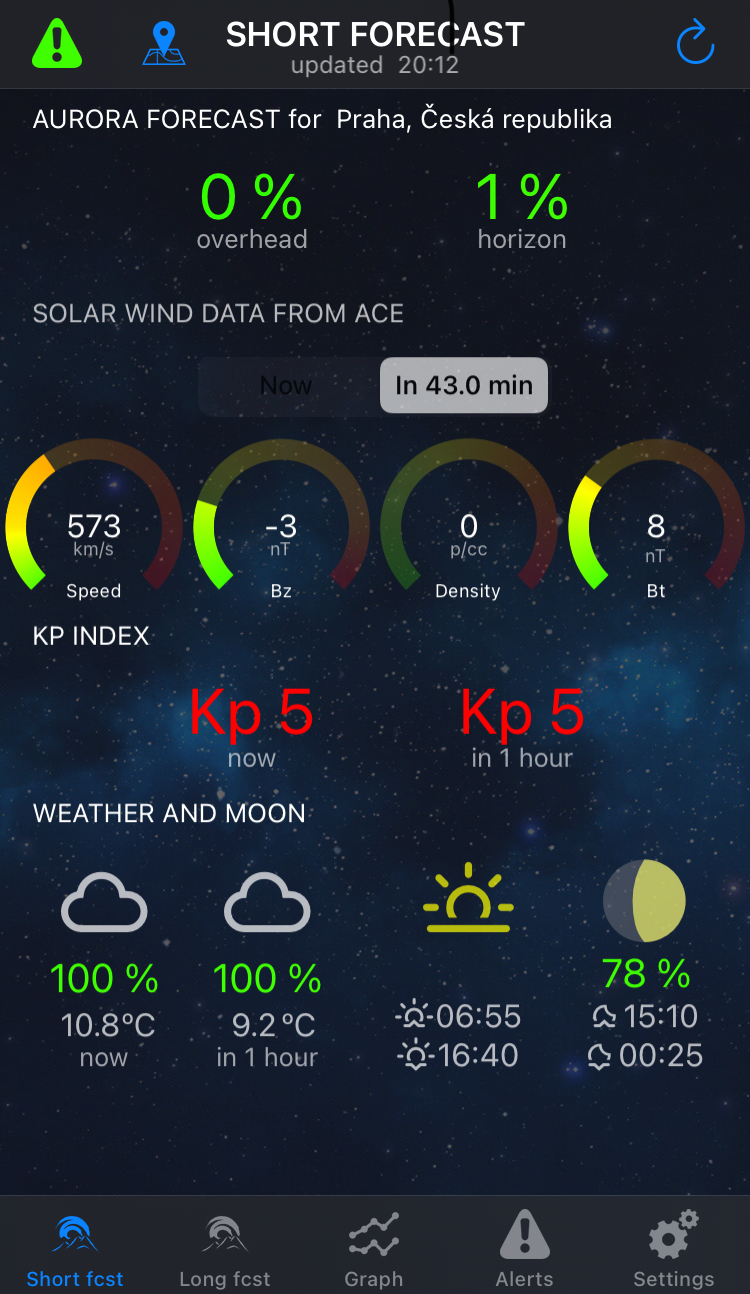 Podstatná je přitom následující pětice: hustota slunečního větru neboli počet částic na prostorovou jednotku, zpravidla na centimetr krychlový; rychlost slunečního větru v kilometrech za sekundu; síla magnetického pole v jednotlivých složkách v nT (podstatná je záporná hodnota vertikální složky pole BZ a celková intenzita Bt); a nakonec obecný index Kp, v rozmezí od 0 do 9. Obecně platí, že čím větší hodnota všech ukazatelů, tím lépe.