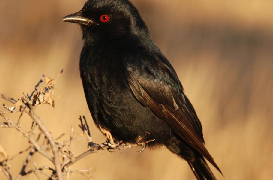 Hlasité volání, které surikatu (Suricata suricatta) zahnalo do bezpečí, patří nevelkému černému ptákovi, který sedí na větvi nedalekého trnitého keře. Drongo africký (Dicrurus adsimilis) dává tímto signálem všem příslušníkům svého druhu jasně na srozuměnou: „Pozor, nepřítel je nablízku!“ Varuje před blížícím se dravcem, hadem nebo šelmou.