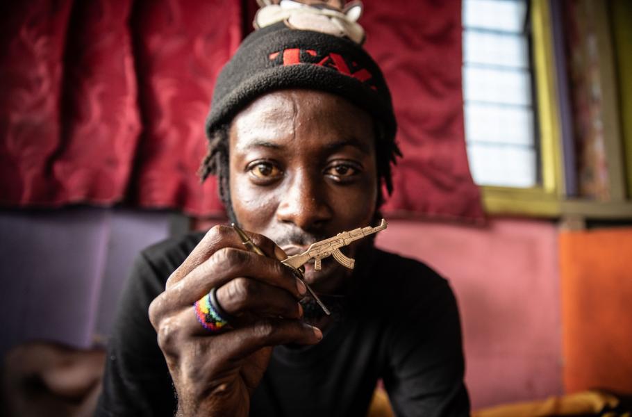 Jo, mladých je tam spousta. Hrozně podobné focení jsem dělal na Jamajce, kde vedou úplně stejný život. Kdybyste na chvíli zapomněl, kde jste, vůbec nepoznáte rozdíl. Poslouchají hudbu streamovanou z mobilu přes bluetooth do repráku, posedávají venku, hulí trávu a řeší, že nemají peníze. Naštěstí v Ghaně nejsou zbraně, protože je známá extrémně aktivní a funkční policií. Dalo by se říct, že jde skoro o policejní stát. Vedle v Nigérii mají zločinnost obrovskou a otázka zní, jestli bych si tam takové focení vůbec mohl dovolit – a pokud ano, jestli bych se taky vrátil. Ale v Ghaně lidi policii respektují a bojí se jí. Všichni mi říkali: „Chceš vidět zbraně? Jeď se mrknout do Nigérie.“