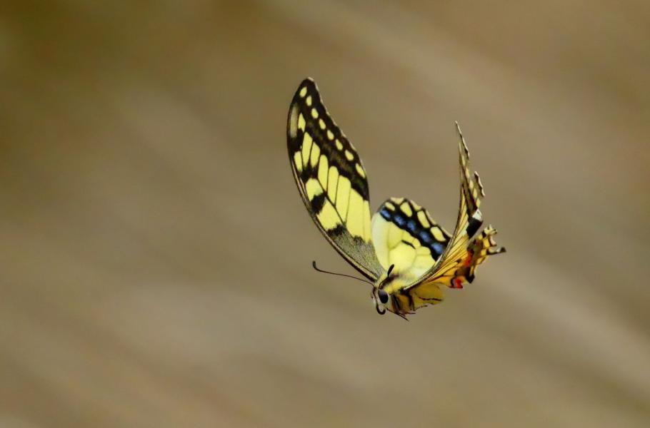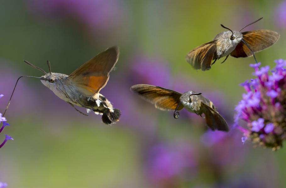 Na fotce je dlouhozobka svízelová, která na podzim navštěvuje naše zahrady. Fotografie je složená z více záběrů, takže můžeme dlouhozobku obdivovat z více úhlů.