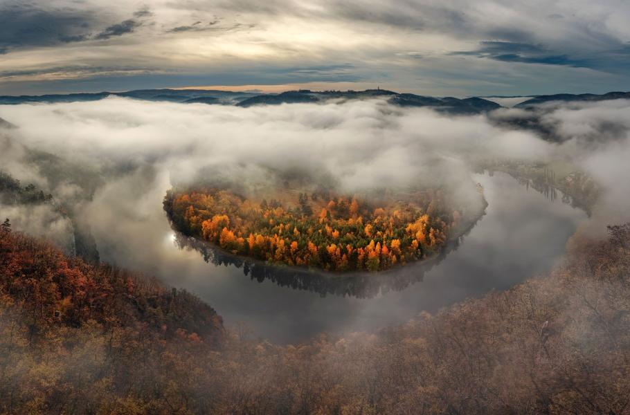 Tento snímek vznikl jednoho podzimního rána na vyhlídce Altán u Solenic, kde je nádherný výhled na řeku Vltavu a její meandry.