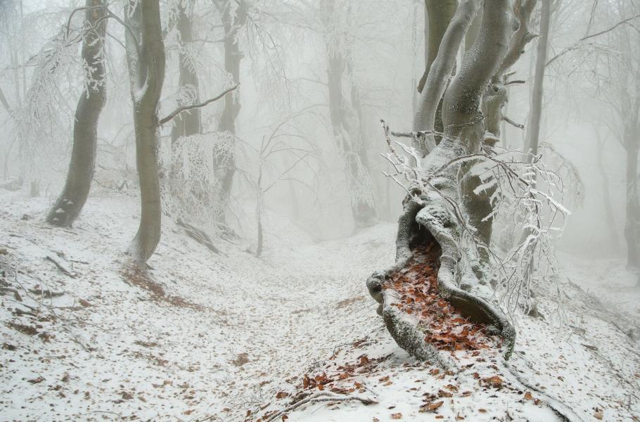 Na snímku jsou buky na vrchu Bouřňák v Krušných horách.